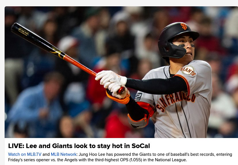 웹의 눈부신 피칭과 이정후의 꾸준한 활약에도 불구하고, 자이언츠는 득점 없이 침묵하며 엔젤스에게 0:2 아쉬운 패배를 당했다. 동부 7연전 원정에 이은 엔젤스와의 원정 3연전까지 힘든 일정을 소화하고 있는 자이언츠는 아다메스의 부진이 심각해 보인다. 2번 타순의 출루 문제가 멜빈 감독의 머리를 아프게 하고 있다.