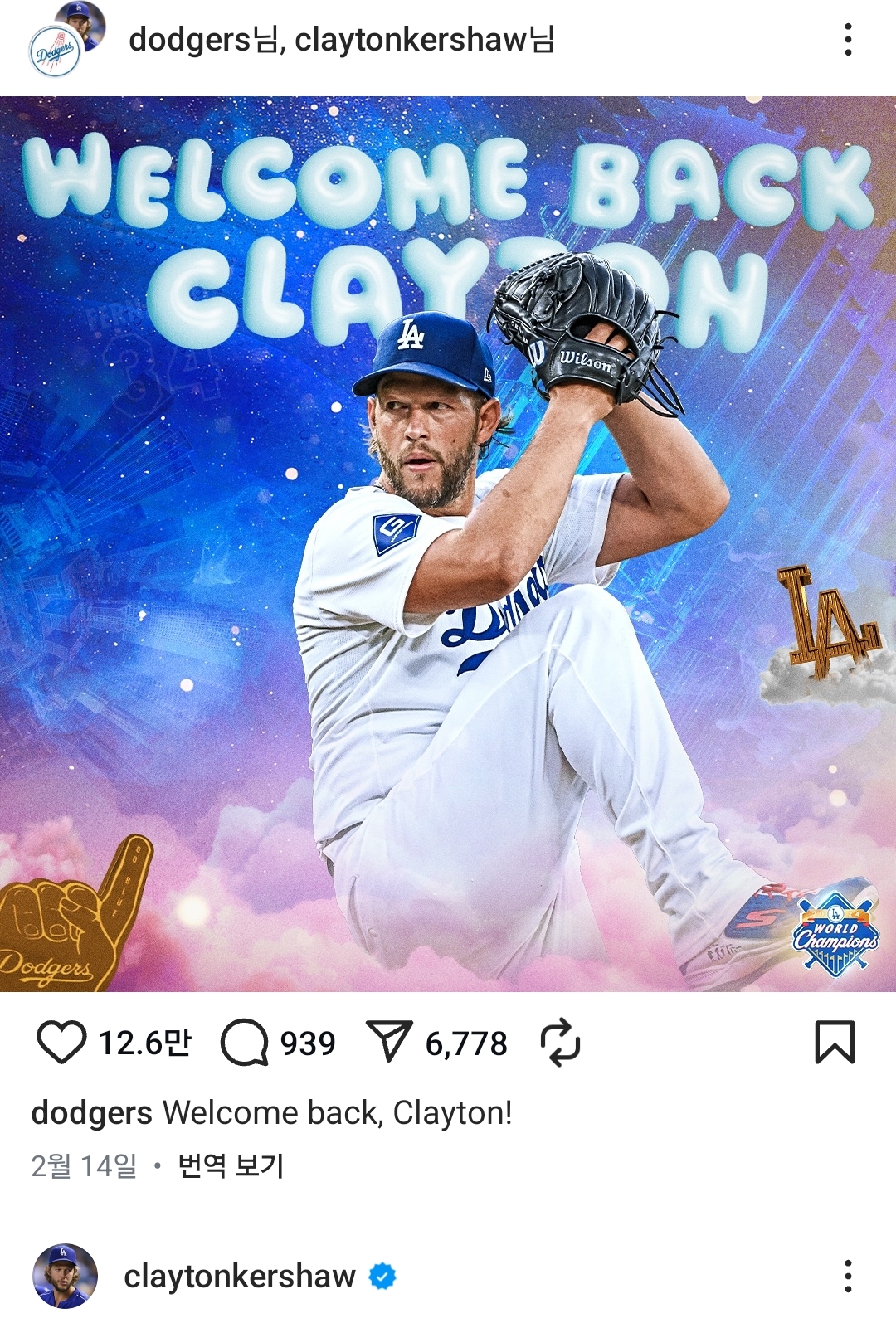 와 진짜 다저스에겐 천군만마지.